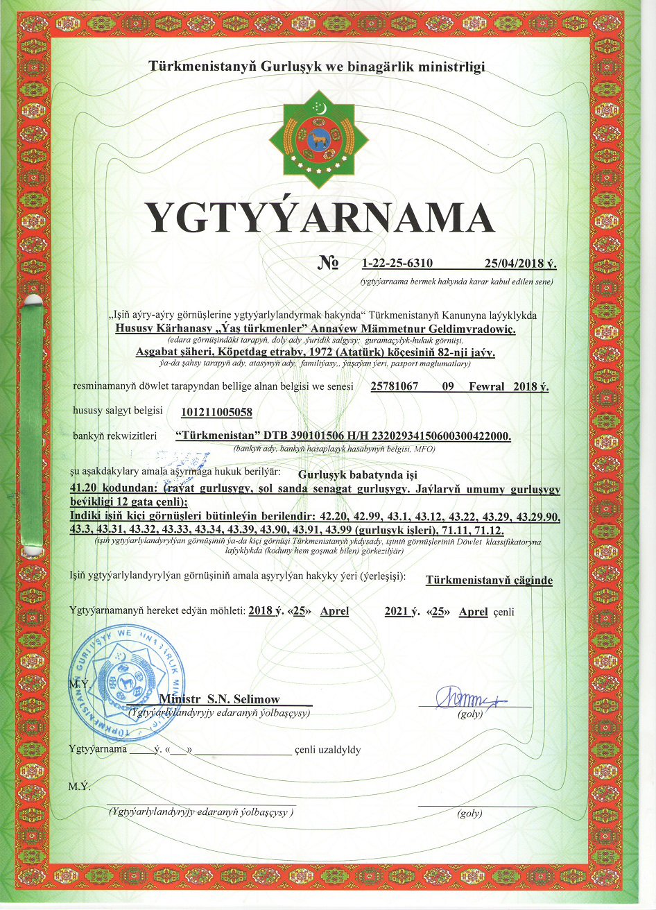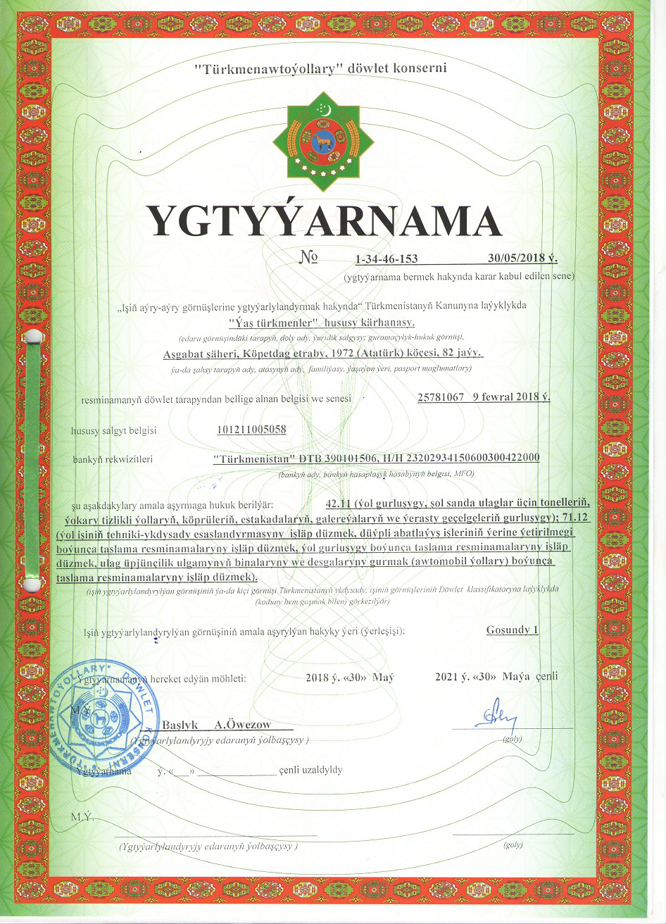 License for the construction and design of roads, bridges, tunnels and overpasses